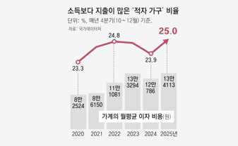 ‘지출〉소득’ 적자 가구, 네 집중 한 집… 6년만에 가장 많아